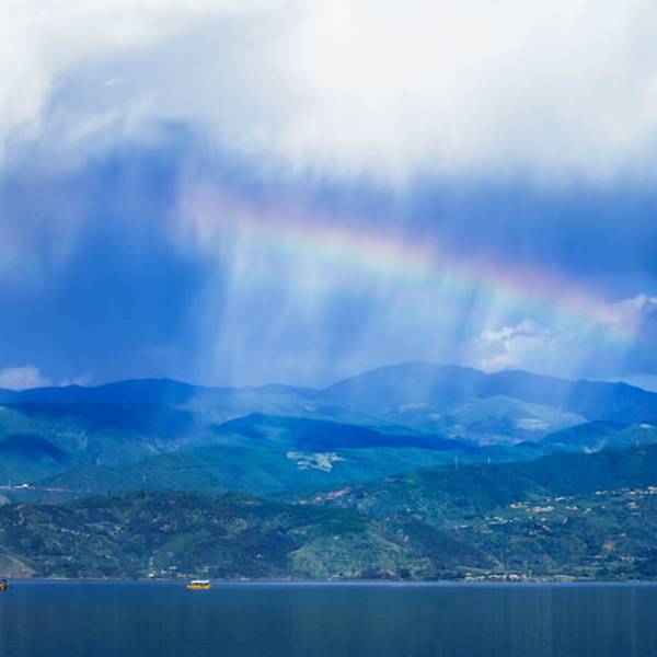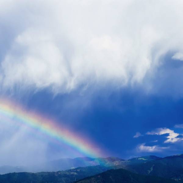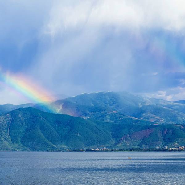 天空中云层仿佛是在浮动。暗淡云层成为了彩虹的极佳背景、