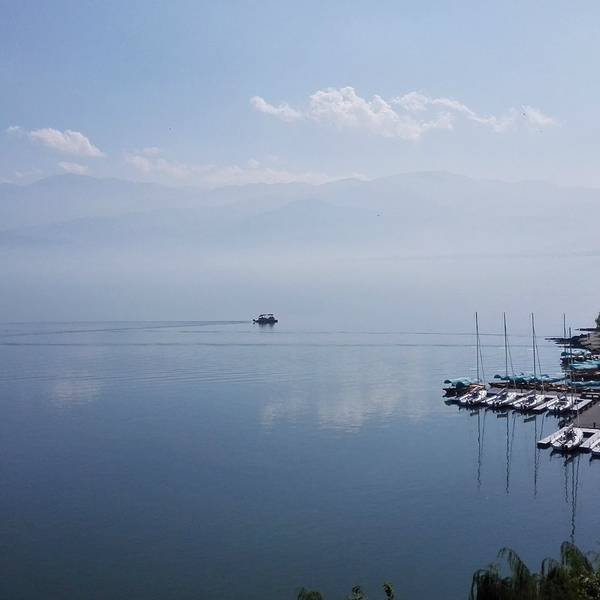 其实,去过很多湖,杭州的西湖,北京颐和园的昆明湖,济南的大明湖,却单单对西昌的邛海心动了。住的酒店正对邛海,所以可以肆无忌惮的在房间窗户上望海拍海,阳光洒在湖面和窗边,窗下是湖边停泊的船只,恍惚间有一种“门泊东吴万里船”的意境。邛海的美在于三百六十度无死角。可以远眺全景,也可以近观。当登高到邛海边高高的泸山上时,可以一览邛海全景,看山看湖看西昌城。漫步在湖边栈道上时,可以看船看水波粼粼和远处的山水烟波淼淼。白日可以沐浴在这高原肆意的阳光中,晚上可以享受在满天星斗和醉人的月色里。从月色风情小镇往前步行不远,就有好几个游船码头,可以选择各种类型和价格的游船或快艇。还可以坐船到湖对岸的小渔村。这里还有一个帆船基地,平时禁止游人入内靠近,但是可以在湖边不远处欣赏观摩。