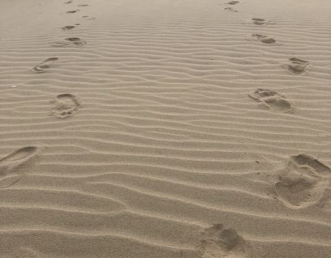 老妈看过远方的家纪录片,这次自己走走这里的沙滩,很开心。这片海的对面就是海南,我们的下一站