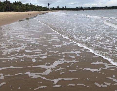 沙子很软很细.踩着很舒服,喜欢在这样的沙滩漫步。这是我唯一见到过沙滩边上有椰子树的 非常有感觉 可惜最近天气不怎么好没阳光和蓝天,不过还是值得一去的地方.