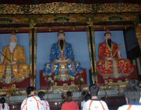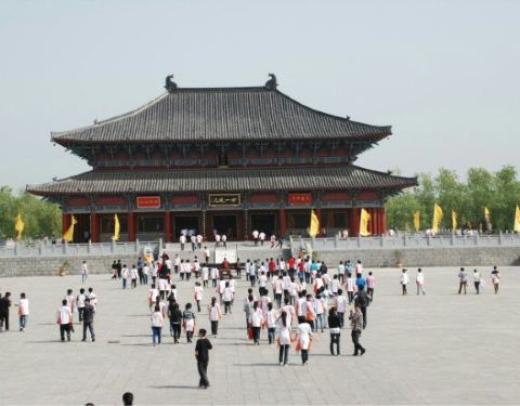 全部走一遭需两个小时以上,古迹众多,全部位于南北向的中轴线上,现存太极殿,三块御碑,柱下史之柱...