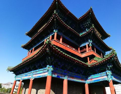 宣化必去景点之一,造型精巧别致。建于明代。外观三层,内实两层。基座打通成十字洞用于行车,现在地面上还留有过去清晰的车辙印记。 楼内走木楼梯可以至二楼,二楼悬有重约万斤的铜质大钟,铸于明嘉靖年间。最早...