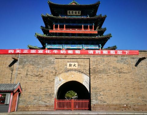 张家口市宣化区的清远楼,始建于明成化十八年,座落在在古城宣化,也就是历史上著名的宣府。一直被誉为第二黄鹤楼。建筑风格独特,是古代建筑的精品。 在网上查的话门票是5元,其实不需要买门票就可以仰视了。现在清远楼已经被保护起来了,通道不能走了,据说几年前是可以从里面走过的。路面貌似没有修缮过,还维持比较古老的样子,只能看看了。 如果去清远楼参观的话,正好可以去附近的清远楼饭庄吃饭,清远楼饭庄是这一带比较有名的涮羊肉饭店,很多北京人周末驾车来这里吃涮羊肉,我去吃了,小卷羊肉,很新鲜。 宣化现在是张家口市的一个行政区,面积不大,参观完清远楼就可以去商业中心吃东西了,旁边的财神庙街就是商业街,离得很近。但商业街不能开车了,只能步行进去。宣化比较有名的是葡萄,但是只有八月-十月的时候去才能吃到。