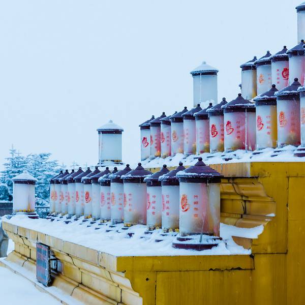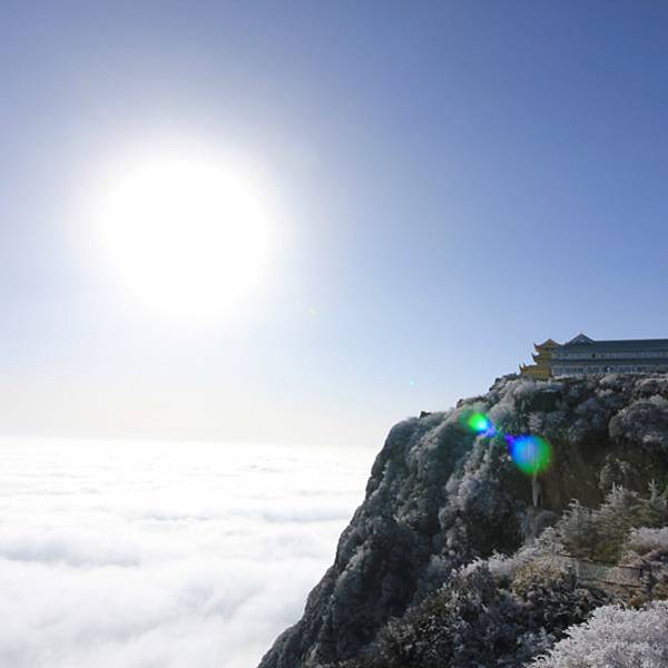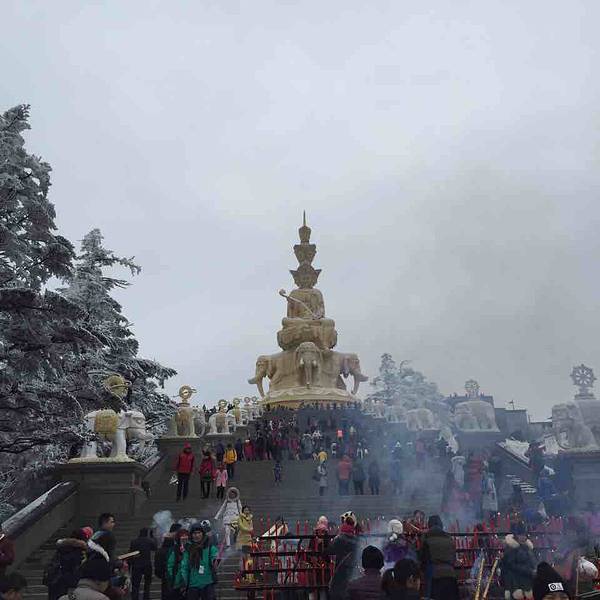 金骆驼 【舍身崖】,绝对让你脚软的悬崖,下面就是滚滚云海。仙境可不是容易到达的哦,漂亮遇上天气好,金顶很漂亮,成功看见金顶日出和云海。6点30爬起床,从来都没有觉得自己这么犀利,能迅速地从暖呼呼的被窝中“唰”地一下起来,出门还是伸手不见五指,黑得墨汁一样的雪夜。7点钟多缆车售票处才开门...遇上天气好,金顶很漂亮,成功看见金顶日出和云海。6点30爬起床,从来都没有觉得自己这么犀利,能迅速地从暖呼呼的被窝中“唰”地一下起来,出门还是伸手不见五指,黑得墨汁一样的雪夜。7点钟多缆车售票处才开门,15分钟就到金顶了(比爬上去轻松多,听说爬上去要1个多小时的,大冬天天还不亮很危险)。坐缆车要脱冰爪的,所以不用急着套冰爪,上了金顶再套也不迟。到了金顶,虽然已经差不多8点了,但天还没亮。金顶海拔3077,惯了在平地生活的小孩,还已经稍稍开始有点高反了。从缆车站,到【十方普贤】(四面观音)一路都是爬楼梯,但是我3步一歇,平时运动少,高反很严重啊,人生第一次体验透不过气的感觉。一切辛苦都是有意义的,辛辛苦苦爬到【十方普贤】,今天运气好啊,金顶晴朗无雾!听说一年没几天好天气的金顶,居然让我们碰到大晴天,一望无垠,云海浩荡,威武!!!大发!!! 蓝蓝的天,高空中没有PM2.5的烦恼啊~ 普贤菩萨在晨光中闪闪发亮,好漂亮!普贤菩萨还上了之前很HIT的《泰囧》电影海报哦~~真的好囧,普贤菩萨居然为泰国代言了!!!在金顶上,还有几个不错的景点:1、很险峻的【万佛顶】,冬天因为积雪路滑,是封锁的。我们只能远观,很仙,一条狭窄的山路指向远方飘然于世外的独立的一座寺庙。仙境可不是容易到达的哦,漂亮!2.【舍身崖】,绝对让你脚软的悬崖,下面就是滚滚云海。3.金殿银殿双辉映,在阳光中很宏伟。 展开