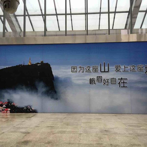 一出站在公交车站坐5A十几分钟左...年假去成都旅游,高铁方便快捷,附近的景点当然不能错过,去了乐山,然后来到峨眉山,一出站就能看到很大的广告牌“因为这座山,爱上一个城”峨眉好自在,这样深入人心的词!