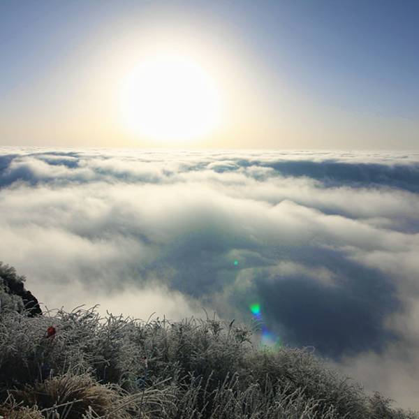 tips:下山以后直接饿傻,为了省钱我们在山上只有吃干粮充饥,到**大巴发车5:40有一段时间,让我们先去市区转一转,对了,市区坐5路车到大喷池那里就是市中心步行街了,大家可以吃肥肠粉,非常有特色哦哦,就在那一带,还有玉妈兔头,和豆腐花那些都可以尝一尝,大家还可以带些四川特产腊肠回去,我13元买了两根,回去蒸了非常好吃超级多。同样也有肥肠粉哦,成都的肥肠粉确实是一绝,配上那个锅盔饼,炸得酥酥脆脆得特别好吃,大家到成都来一定不要错过的,这里峨眉山一行就全部写完了,给个建议,如果真的想第二天看日出的,甚好住在金顶,价钱虽然贵了些但是金顶的日出**不会让你失望,至少也要住在雷洞坪,从出发到上到山上起码40分钟,所以大概房价山顶在300左右,雷洞坪100左右就可以,前提是普通日子去的,据说国庆拍的不是日出是人在这里就可以看到雾凇了妈妈看到这幅图的时候以为前面是路,只有我们知道这片浩瀚的云海是多么的一望无际 展开