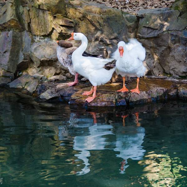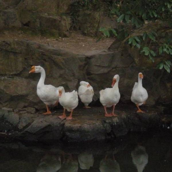 这座鹅池里面当真放养了几只大白鹅。都说鹅能看家护院,估计是比较厉害,于是我也没敢过于招惹它们。