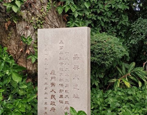 嘉兴寨:明末清初,郑成功曾在此屯兵,名“嘉兴寨”,公园内的嘉兴寨遗址1982年被公布为市级文物保护单位,今残存寨墙数段,始建年代不详,鸿山之顶有一巨岩,上镌刻楷书“嘉兴寨”3字,相传为郑成功手迹。