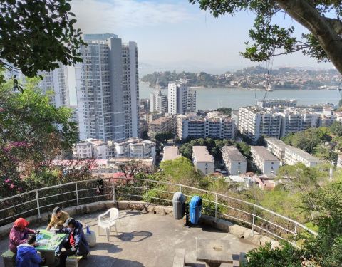 真是悠闲的中老年人生活呀… 半山腰和山顶的景致都很好。观景平台直面鼓浪屿,但是有号楼挡住了郑成功方向山顶有茶舍 我看到有桌人喝茶吃早点 还有一桌在打牌 真是悠闲的中老年人生活呀… 半山腰和山顶的景致都很好,观景平台直面鼓浪屿,但是有号楼挡住了郑成功方向。