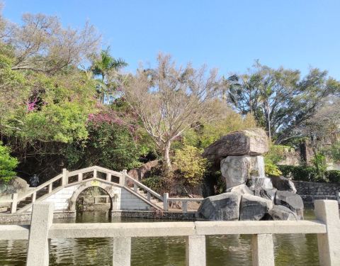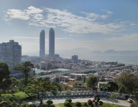 鸿山公园:登山步道直达山顶,可俯瞰厦门老城区和鼓浪屿。公园内的嘉兴园,由亭、台、阁、池、花、木组成,是拍照的好去处。