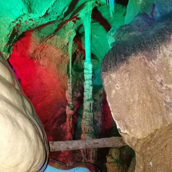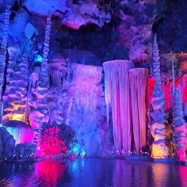 洞里景色很不错!门口的饭菜也非常的可口!洞内的石笋石柱在灯光的照射下流光溢彩!洞内还有几个比较大的钙化池,雨季水流顺势而下还可以看到瀑布!