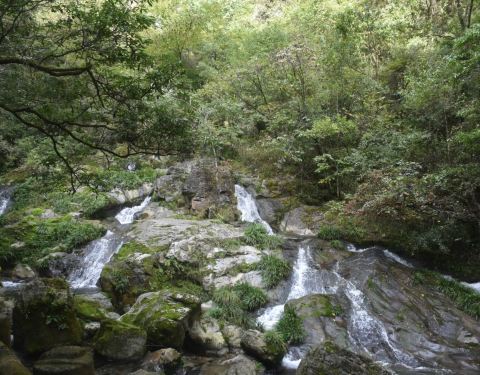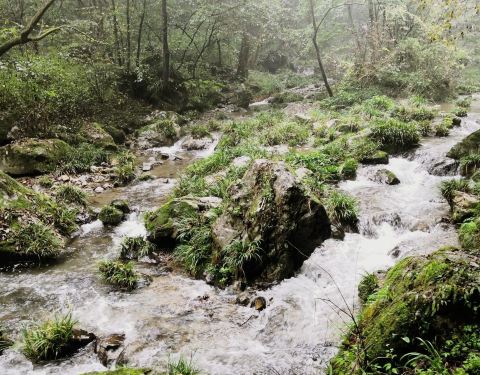 野人谷内气候湿润、风光优美、溶洞发育、植被茂盛、山高水深、峰峦叠嶂