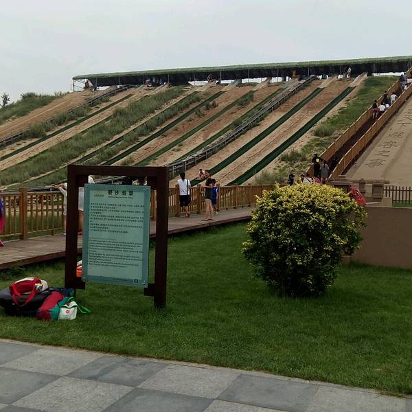 滑沙场坐落在黄金海岸的中部。5000多公顷苍翠的林带衬托着连绵40多公里的沙丘,与大海奇妙地组合在一起,构成一幅美丽的、自然的海洋大漠风光。 滑沙场的开发面积为10平方公里。来到这里,便见一道道并列的沙山,一直延伸到海滩。这些沙山,高达2040米,连绵不断,陡缓起伏。乘坐索道缆车,可直达沙顶。沿途还可以铡览一望无垠的沙海,观赏黄金海岸独有的沙漠风光。滑沙运动便由这里开始。 滑沙的主要工具是滑沙板,它用竹木制成、轻巧又快速,可进行单板单滑和单板双滑。