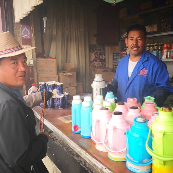 小昭寺的位置有点远了,在拉萨城郊地块小昭寺的位置有点远了,在拉萨城郊地块。 这里的建筑外观和物品陈列,显得很朴实,不追求吸引力,本地人来的多一点,而且店铺在卖的商品也是更加实用的一些东西。