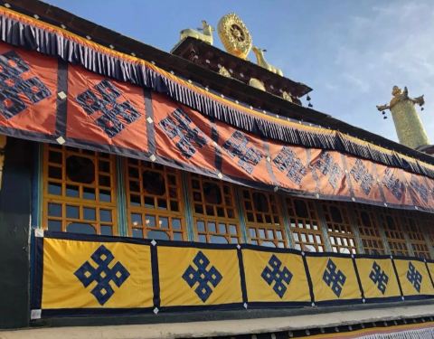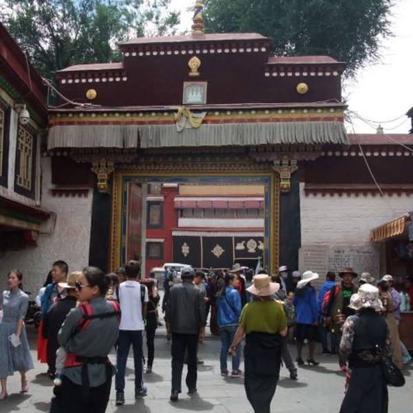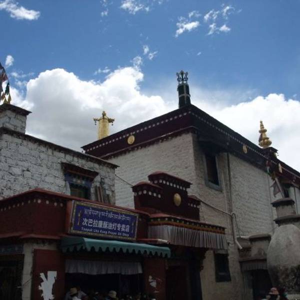 "小昭寺位于拉萨市北京路以北的小昭寺路上,始建于公元641年,由文成公主奠基而建,寺庙取名“甲达热木齐祖拉康”,意为“汉虎神变寺”。小昭寺虽然规模和名声都比不过大昭寺,但别有风味。小昭寺建筑风格融合了汉藏式建筑特点。起初是由文成公主入藏时带来的汉族工匠修建而成,所以早期的小昭寺带有明显的汉唐风格。拉萨当地老人管这里叫“热木齐”,意思就是“汉人的”。建成后的小昭寺历史上几经火焚和重建,风格早已被藏式同化,只有殿内残存的10根大柱子依旧可见吐蕃遗风,精心雕刻的莲花图案、四周环绕的花草、卷云、六字真言还有镶嵌的珠宝,仿佛正在诉说着那些陈年往事。相对于拉萨其他寺庙,小昭寺显得很小,主体建筑为正面的一座大殿及门楼、转经回廓等附属设施。大殿有三层,底层为门庭、经堂和佛殿三部分,周围是转经廊道。门庭内左右为隔门小房,右间是放法器的地方。左间是配殿,内供有石榴树枝做的贡布色懂马塑像。门庭后的经堂内供奉有舍利佛的灵塔和密集金刚、吉祥金刚、四大天王和藏巴拉等佛像。后部为佛殿,殿内供有尼泊尔尺尊公主带来的铜鎏金不动金刚佛像和八大随佛弟子泥塑像,以及两大忿怒力士、宗喀巴塑像等,是尤为值得驻足的地方。大殿二层主要为僧房,寺庙的堪布也住在这里。其后是金顶殿,金顶为汉式风格,以斗栱承托。金顶垂脊末端套有羯摩鱼头,殿内门窗壁画、柱子等则是藏式风格,金顶殿是藏汉建筑的巧妙结合体。参观完大殿,就基本来到了寺庙后部的廊道,环绕大殿的廊壁上绘有精美的无量寿佛图像和四大金刚及六道轮回图,图案精美而鲜艳,有时会遇到热心的喇嘛为你讲解其中的奥妙。廊道旁边是一大排转经筒,平日里,来朝拜的藏民会沿着廊道边走边拨动转经筒,以祈福迎祥。这里也是寺内仅有可以拍照的地方。拨动着转经筒前行,就走回到寺门口。除了小昭寺,可以在门口的小昭寺路上逛逛,路上有当地人的肉店、商铺和茶馆等,徜徉其间,感受拉萨当地人的市井生活。"