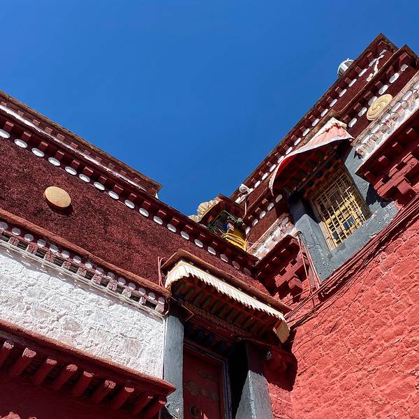 融合了汉藏式建筑特点,规模不大却很清静,沧桑韵味十足。
