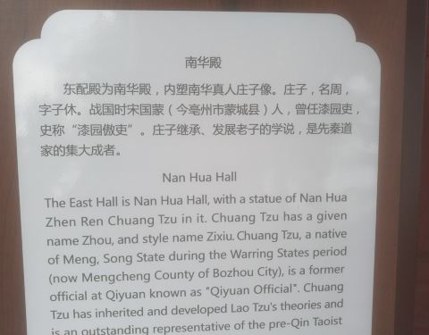 今年是亳州旅游年,门票只要十元。历史可追溯到唐代的道观,现在的建筑承袭自明代历史可追溯到唐代的道观,现在的建筑承袭自明代。门前的小巷据说是孔子向老子问礼之处,有些宣传画可看。今年是亳州旅游年,门票只要十元。里面很小,就中间两座大殿,还有两座偏殿,对道教不是特别感兴趣的话,...历史可追溯到唐代的道观,现在的建筑承袭自明代。门前的小巷据说是孔子向老子问礼之处,有些宣传画可看。今年是亳州旅游年,门票只要十元。里面很小,就中间两座大殿,还有两座偏殿,对道教不是特别感兴趣的话,不进也罢。 展开