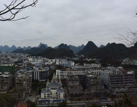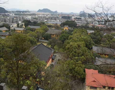 登上峰顶可环望四处城区景色,从上而下观四周群峰和之下的靖江王府,鸟瞰桂林城登上峰顶可环望四处城区景色,从上而下观四周群峰和之下的靖江王府,鸟瞰桂林城。山上建有玄武阁、观音堂、三客庙、三神祠,山下有月牙池等景观。