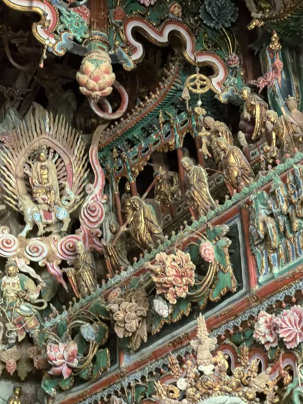 特别是大雄殿宝殿内满堂木骨泥质悬塑艺术,贴金敷彩,金碧辉煌,精巧玲珑,梁架彩画富丽典雅,颇具特...整个寺院依山叠造,构思巧妙,高低有别,错落有致,地尽其用,浑然一体,特别是大雄殿宝殿内满堂木骨泥质悬塑艺术,贴金敷彩,金碧辉煌,精巧玲珑,梁架彩画富丽典雅,颇具特色,堪称中国雕塑艺术史上的"悬塑绝唱...整个寺院依山叠造,构思巧妙,高低有别,错落有致,地尽其用,浑然一体,特别是大雄殿宝殿内满堂木骨泥质悬塑艺术,贴金敷彩,金碧辉煌,精巧玲珑,梁架彩画富丽典雅,颇具特色,堪称中国雕塑艺术史上的"悬塑绝唱"。一念心清静莲花处处开小西天之后真的再无悬塑啦 太精美了 展开