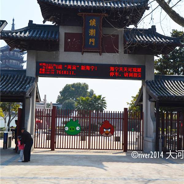 金骆驼 ...,海宁市刚好位于钱塘江的出口,海与江的交接处,而盐官古镇紧邻钱塘江岸边,是观看海宁潮的最佳地点告别了阔气的海神庙,我说我们去看看一日两次潮吧。