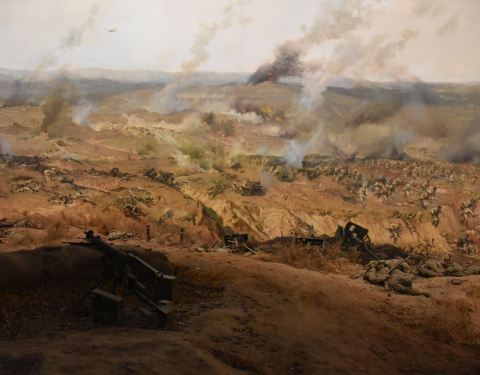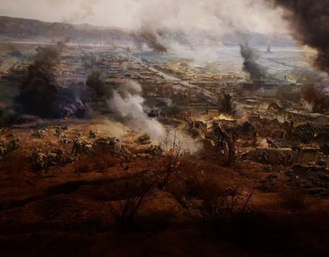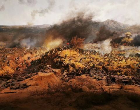 辽沈战役纪念馆是一座专题性军事博物馆。其中全景画馆有中国第一幅全景画——《攻克锦州》全景画辽沈战役纪念馆是一座专题性军事博物馆。主要由革命烈士纪念塔、烈士名录碑、大型组雕、兵器园、广场、纪念馆组成。纪念馆基本陈列设有序厅和战史馆、支前馆、英烈馆、全景画馆 4 个专题馆。其中全景画馆有中国第...辽沈战役纪念馆是一座专题性军事博物馆。主要由革命烈士纪念塔、烈士名录碑、大型组雕、兵器园、广场、纪念馆组成。纪念馆基本陈列设有序厅和战史馆、支前馆、英烈馆、全景画馆 4 个专题馆。其中全景画馆有中国第一幅全景画——《攻克锦州》全景画。它是我国美术史上前所未有的艺术巨作,已跻身于世界大型全景画的行列。全景画将绘画、塑行、声光电等多种表现形式融为一体,产生一种“如临其境”的视听效果,真实、形象地再现历史。 展开