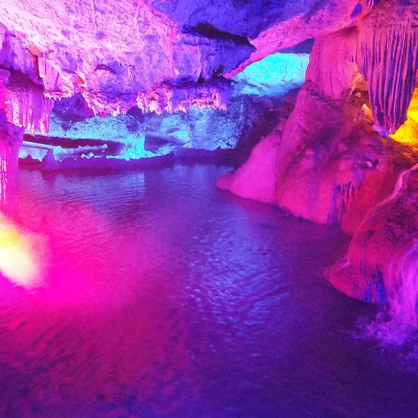 就是广西很常见的喀斯特地貌的溶洞,有讲解员,好像是每小时一次,讲解员没来是不能自己进洞的。