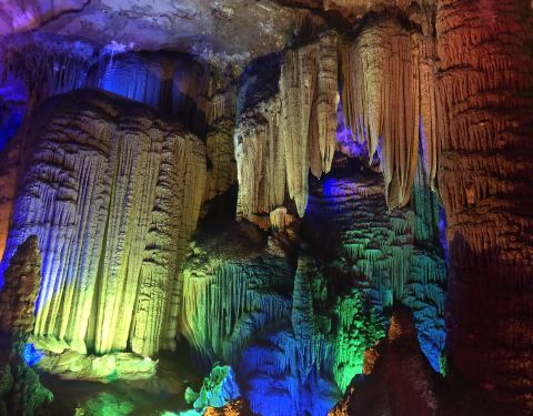 溶洞景观不错,导游解说也蛮好的,还送了洞里为游客拍照做成的钥匙扣,大照片要15块,就是周边交通不便利,从客运西站进去打车30 块,出来叫不到的士,周日也看不到有便民车搭客车什么的,最后走了差不多半公里才看到一辆摩的,宣传力度不够,希望能开通一条专线车