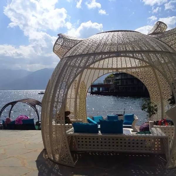 这个沿洱海分布的地方,有玉几岛、南诏风情岛几个可去可不去的景点,你一定要做的,是住一家安静的客栈,这里的确装修声遍地,但闹中取静的客栈并不少。最好是海景房吧,能躺床上270度观赏洱海的美。经济有限的也没问题,双廊出名的客栈有海地生活、半岛63等,公共区域都是开放给游客的,在这里一家客栈一家客栈地参观,也要花掉半天一天的时间。各有各的美,但还是有共性,即与洱海水相近的蓝色,和白色的高脚桌椅。都引得爱美的女生排着队凹造型。再次便是骑电动车/自行车去附近玩了,喜洲古镇还是比较远,不推荐自己骑过去,最适合的还是骑到挖色了,来回2小时刚刚好,双廊到挖色这一段是骑行中的精华,一定不能错过。双廊遍地可租车,最好在大建旁村的马路边租,比较方便,不用穿过狭窄的双廊街道,很多客栈还有免费的车可以借。