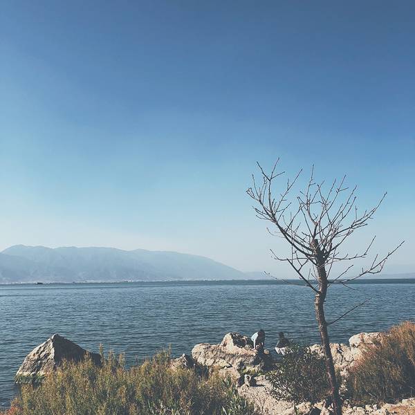 不同于海西,海东这边洱海水里很少看到有枯树,但是有很多石头啊!!哈哈哈😄,坐着、躺着、站着随便你怎么着,都可以拍拍拍!^_^背景就是洱海蓝色的水,用大光圈虚化效果就炒鸡好看呐!第二站:小普陀