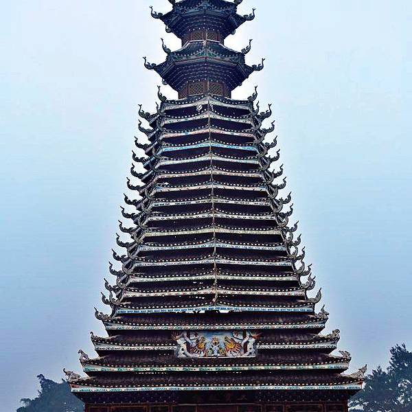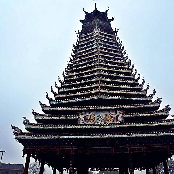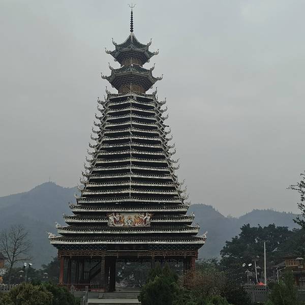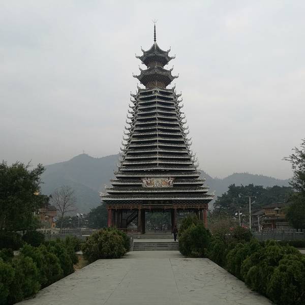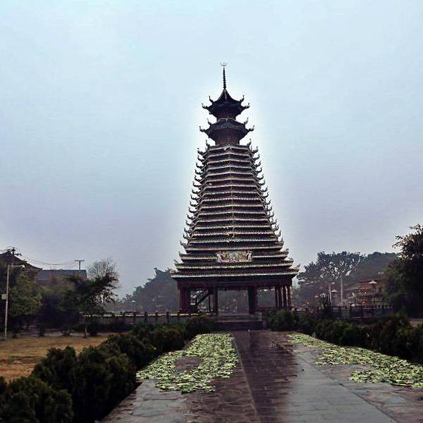 位于贵州省榕江县车江三宝千户侗寨中部,始建于清道光年间,咸同年间被毁,光绪十七年(1891年)重建,主楼坐北朝南,为三重檐四角攒尖木质结构,不用一根钉子。建筑面积225平方米,21层,总高35.18米,总占地面积8000平方米。