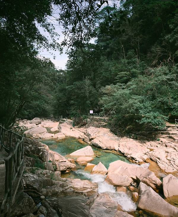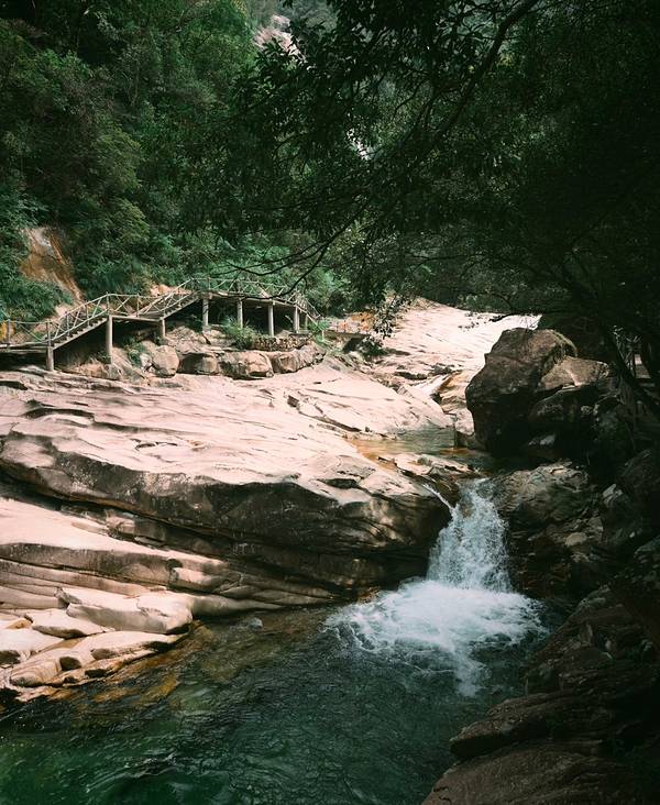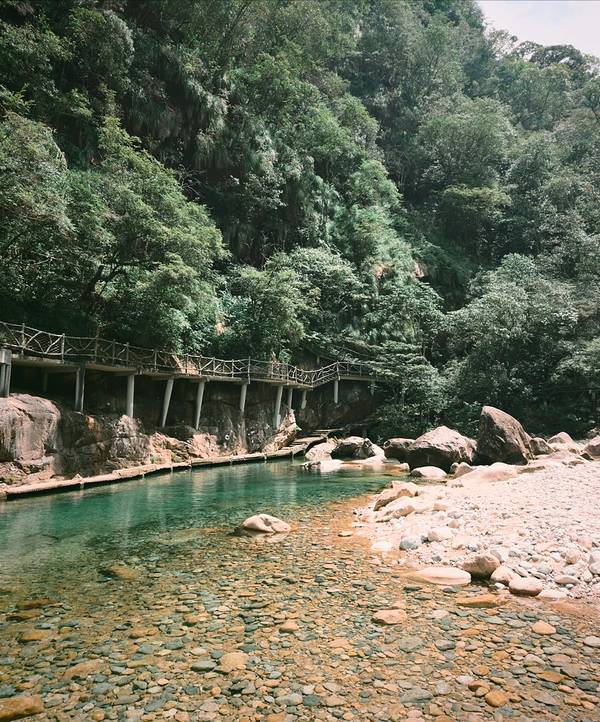 虎啸岩景区逛完一遍大概需要1-2个小时,虎啸岩在攀爬的时候必须小心,它除了狭窄的石梯外,还有部分地方直接是斜坡面没有石梯,如果遇到地面是湿的这样更容易滑倒,所以你就需要必备一双防滑运动鞋。在虎啸岩石梯的开始处,有一座写着“虎啸岩”三个字的石碑。可能是由于是淡季,我在攀爬石梯的时候前后都是没有游客的,站在半山腰欣赏着眼前的山水画,远处笼罩在雾气中朦朦胧胧的山尖,在虎啸岩的顶端有一处观景台和“定命桥”,定命桥是一座很窄很短的桥,在桥的两边的铁链上挂了一些许愿锁,走到这里就是尽头了。你可以站在挨着定命桥的观景台看风景,这里是虎啸岩的最佳观景的地方。在我继续沿着虎啸岩下山的时候,途径“天成禅院”,这里有一座可供游人休息的平台,在虎啸岩的山壁上雕刻着一尊观音的佛像,佛像的下面摆放着供台,只是这块悬崖壁的顶端是向外倾的,刚好可以保护这尊观音佛像不受风雨侵蚀。我想这是虎啸岩景区内最大的景点了。稍作休息便继续沿着山路走,在即将到山脚下的时候,是一座很窄很陡的人工建成的楼梯,只有通过这座让人心惊肉跳的楼梯才可以下到山脚下。整个景区里都很凉爽,葱郁的树木,狭缝里的阳光,偶尔途径潺潺的水流,在出口处有一座刻着“绿野仙踪”的石碑,迈着轻快的步伐走完虎啸岩,继续下一个景点了。 展开