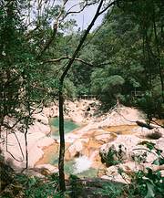 午后我们走进龙归源,这里更加幽静。林间小路被绿树遮盖,凉爽舒适,溪水潺潺,鸟鸣声声,仿佛与世隔绝。偶尔能看到小猴子在树上跳跃,孩子既紧张又兴奋,远远地静静观察,感受与野生动物相遇的奇妙瞬间。沿途休息的石凳很多,走累了就坐下歇一歇,听水声、吹山风,看孩子在一旁自由奔跑,内心格外平静治愈。