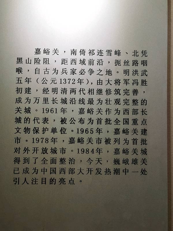 其实如果在游览嘉峪关之前来先看一下这个博物馆会更好一些,至少会提前对嘉峪关有更多的了解这个博物馆就在嘉峪关关城景区旁边,离开的时候看见就进去参观了一下。 博物馆有两个主要部分,一是嘉峪关的历史、建筑、功能介绍。其实如果在游览嘉峪关之前来先看一下这个博物馆会更好一些,至少会提前对嘉峪关...这个博物馆就在嘉峪关关城景区旁边,离开的时候看见就进去参观了一下。 博物馆有两个主要部分,一是嘉峪关的历史、建筑、功能介绍。其实如果在游览嘉峪关之前来先看一下这个博物馆会更好一些,至少会提前对嘉峪关有更多的了解。 二是嘉峪关附近出土的一些文物,要知道嘉峪关附近有很多魏晋时期的墓葬哦。 整个博物馆不是很大,一遍看完半个小时够了。 展开