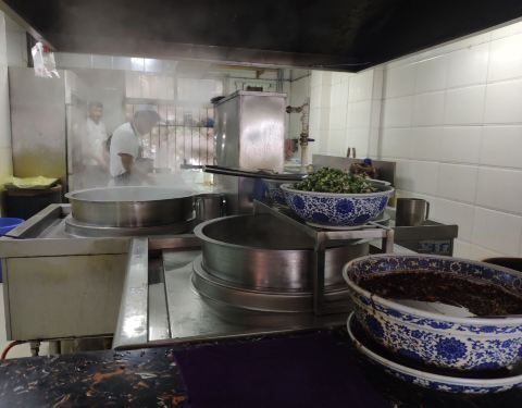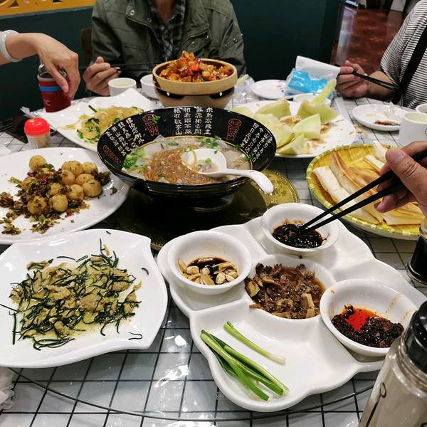 乘车到嘉峪关市区,小余推荐的是“旺角食福”。菜的味道还不错。一盆汤大家觉得很不错!于是打包了很多菜在停车场边上,还有一座嘉峪关长城博物馆,上次来时没有进去,这回进去看一看!历代修建的长城和位置!丝绸之路线路图看一下正版的嘉峪关的介绍!从博物馆出来,已是中午,该解决肚子问题了!乘车到嘉峪关市区,...在停车场边上,还有一座嘉峪关长城博物馆,上次来时没有进去,这回进去看一看!历代修建的长城和位置!丝绸之路线路图看一下正版的嘉峪关的介绍!从博物馆出来,已是中午,该解决肚子问题了!乘车到嘉峪关市区,小余推荐的是“旺角食福”。店面不大,看上去还比较干净。进去安排到一个小隔间,落坐点菜。老板是一个三四十岁的大肚汉,热情推荐了好几道菜,我们说吃不了,大汉说没问题,结果是问题很大!菜的味道还不错。有酸菜炒元宵,驴肉火烧,沙葱炒鸡蛋,一盆什么汤,等等!