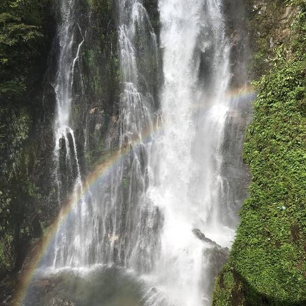 彩虹瀑布很值得一看,水口乘车点下车后沿着小溪旁的小路顺流而下,步行一千多米,沿途木茂密,空气清新彩虹瀑布很值得一看,水口乘车点下车后沿着小溪旁的小路顺流而下,步行一千多米,沿途木茂密,空气清新。瀑布从一百多米上面倾泻而下气势雄伟壮观,水花溅到我们身上,如果久呆一身都会湿透