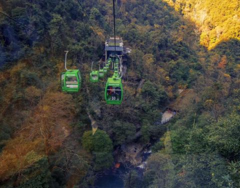 龙潭有上下索道,不过要另外买票,单程60元,双程70元。坐索道会有一些美景看不到,因此很多人会选择走下去,然后坐索道上来。懒如我们,还是选择了坐索道。