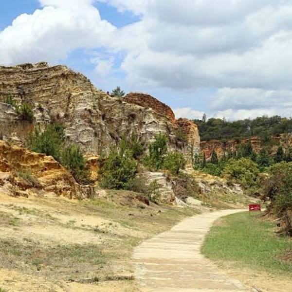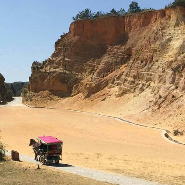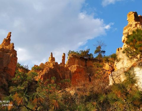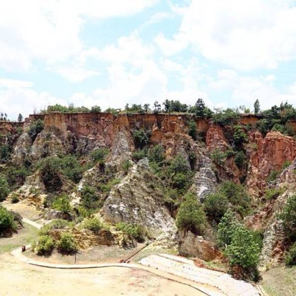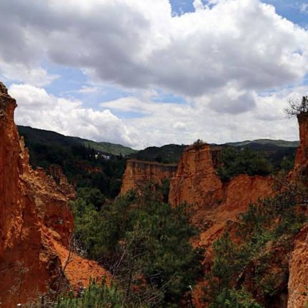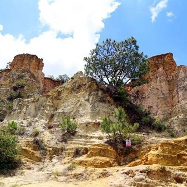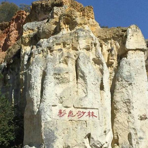 彩色沙林的景观和土林有些类似,不同的是,彩色沙林是由含矿物质的砂岩风化而成,可以随着日照光线变幻不同的色调,有红、白、黄、灰、黑等好几种颜色,拍出来的效果变幻无穷。特别是傍晚的时候,夕阳下沙林的层次感更为明显。景区内的沙林景观造型各异,以形似命名,号称有108处,最为传神的是“蛮王出征”、“祝融布阵”和“秀才看榜”。 展开