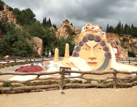 这个地方还行,门票比较贵,是100块钱的门票优惠票收50元,学生票和老年票都是35块钱的,性价比不高这个地方还行,门票比较贵,是100块钱的门票优惠票收50元,学生票和老年票都是35块钱的,性价比不高。景区很大,逛不完,只是你得走好远才能看到彩色的沙林,不太建议腿脚不好的老年人去,都是山。沙雕做的不是很...这个地方还行,门票比较贵,是100块钱的门票优惠票收50元,学生票和老年票都是35块钱的,性价比不高。景区很大,逛不完,只是你得走好远才能看到彩色的沙林,不太建议腿脚不好的老年人去,都是山。沙雕做的不是很像。做的沙画儿倒是挺好看的也不贵,小的2块钱最大是40块钱的。可以去看看,就是要准备充足的时间。 展开