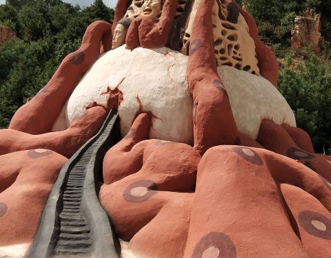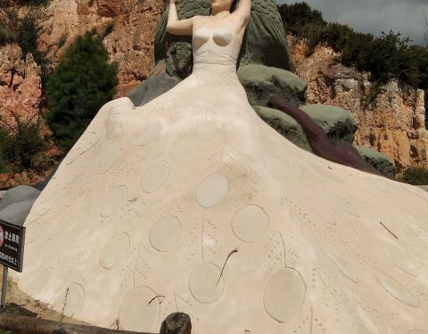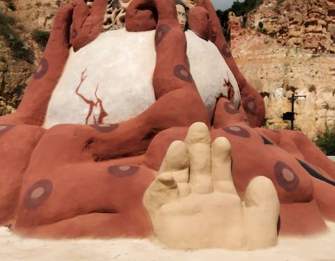彩色沙林会随着光线变幻不同的色调,十分奇特。 走在庞大的沙雕作品之间,好像进入巨人的奇幻世界。