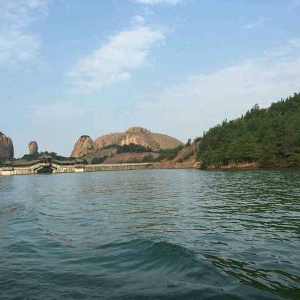景区入口处为一山洞,进洞后即为外湖,游客可划舟荡漾湖中,丹山碧水,历历在目。圭峰多泉,有每隔15分钟喷涌的间歇泉;有终年不息的神塘涌泉;有犹如仙女散花的雨花泉,均汇入湖内。舍舟登陆,拾级上山。山峰多为平地突拔而起,有形有色,如老人峰、双剑峰、三叠龟峰、雨花岩、望郎峰等。在四声谷处拍掌三下,回音四起。