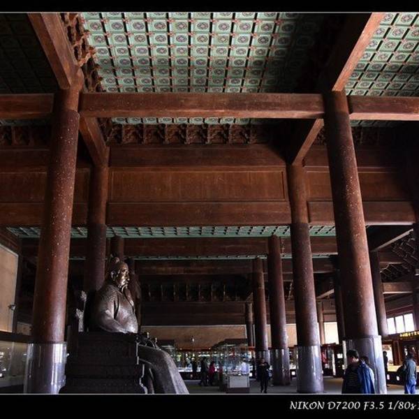 除此之外远没有太过过人的地方。正好隔壁过来一个导游在那儿念叨这个”祾恩殿“的特殊地方:原来是全世界啊,全世界最大的楠木建造的宫殿!