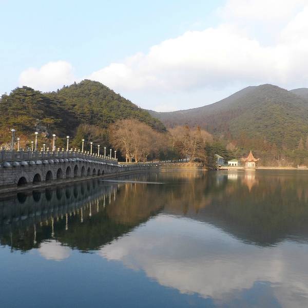 金骆驼 芦林大桥是桥坝一体,湖那边看就是桥,这边看就是坝,落差很大,放水时应该很震撼吧。群山环绕,空气清新芦林湖,位于庐山之上,非常静美的一个人工湖,是庐山居民的饮用水水源地,湖面平静如镜,湖中两个小亭子矗立其中,看得人内心也跟着平静下来了,虽为人工湖,且1955年才建坝拦水成为湖,历史也就几十年,但是湖...芦林湖,位于庐山之上,非常静美的一个人工湖,是庐山居民的饮用水水源地,湖面平静如镜,湖中两个小亭子矗立其中,看得人内心也跟着平静下来了,虽为人工湖,且1955年才建坝拦水成为湖,历史也就几十年,但是湖底却是大有来头,在二、三百万年前,庐山处于第四纪冰期,这里是一个典型的冰窖,是当年庐山最大的屯积冰雪的谷地,现在周围都是群山环绕,绿树成荫,夏天来一定非常凉爽,是一个避暑的好地方。游客来芦林湖的方式有很多种,可以自驾游,因为旁边就是芦林湖停车场,还可以坐旅游观光车到芦林湖站下,车站就在湖旁边,旅游观光车票是强烈推荐购买的,面值80元,7天内无限次乘坐,但每次乘坐前都要找工作人员报站并刷卡验指纹,庐山是一票通,也就是山下大门买的180元门票已经包含山上所有景点了,所以芦林湖并不需要再验票,因为芦林湖周边除了停车场,其他的旅游配套设施并不太完善,也就是没有餐馆、酒店等,但是附近景点还很多如:庐山博物馆、芦林大桥、含鄱口、庐山植物园,所以建议在牯岭街住宿,之后将芦林湖附近的几个景点串联在一起游玩,总游玩时间在3-4小时,也就是半天,之后再回牯岭街吃饭。