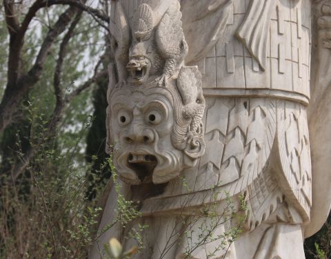 兰陵王高长恭,是中国历史上著名的四大美男子之一,北齐宗室将领,居功至伟,传说常常带着狰狞面具上阵,敌人闻风丧胆,后被大王猜忌赐死。兰陵王墓园交通不便,占地不大,进入后仅有坟头、雕像和墓碑,但是却吸引不少游客前来,比附近的北齐各代皇帝陵墓要热闹许多,可见其人气和英明在民间的影响力。