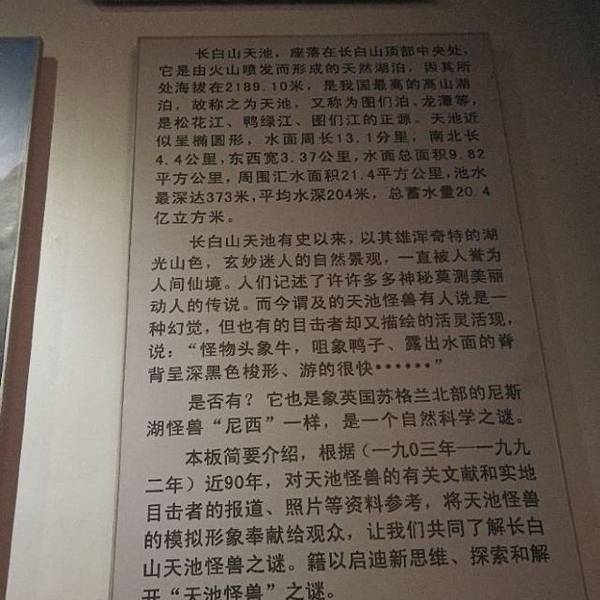 但是根据长白山的历史形成以及这个地区的动植物特色,周边景色的介绍啊,相当丰富(当然,还顺带介绍...这个博物馆吧,虽然没有很多人来,但是根据长白山的历史形成以及这个地区的动植物特色,周边景色的介绍啊,相当丰富(当然,还顺带介绍了天池水怪)一楼主要是讲不负盛名的长白山发源史,二楼则是“特产”(讲真,除...这个博物馆吧,虽然没有很多人来,但是根据长白山的历史形成以及这个地区的动植物特色,周边景色的介绍啊,相当丰富(当然,还顺带介绍了天池水怪)一楼主要是讲不负盛名的长白山发源史,二楼则是“特产”(讲真,除了猴儿啥都有) 展开