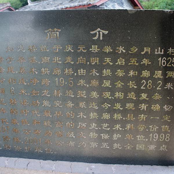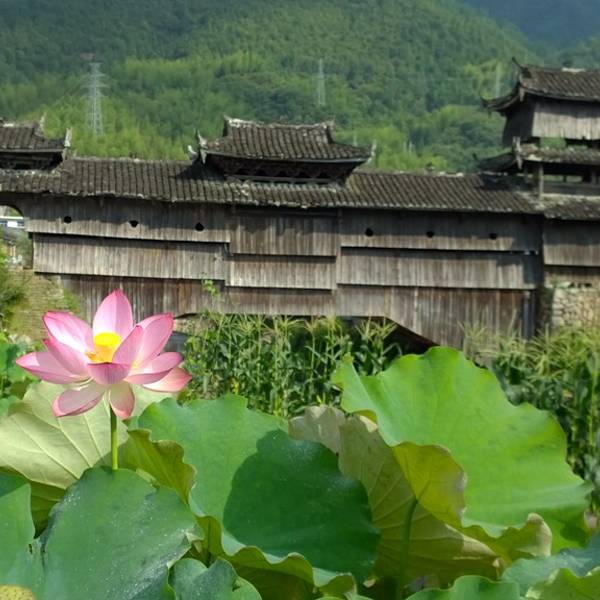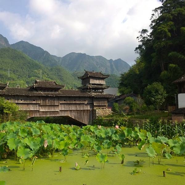 月山又名金乡、东庄、举溪、举水,位于庆元县城东南57公里,海拔820米,属亚热带湿润季风气候,人口1700人,现为举水乡政府所在地。境内峰峦叠障,山川景色秀丽清幽。月山村后山形如半月,村前溪水曲似银钩,村庄坐落其间,如同山环水抱的一轮圆月,故名月山。月山村首尾各有一块田洋,分别称为“考坑垟”和“梅花垟”,六座古廊桥形如长虹卧波,亭台楼阁错落有致,展现出一幅“小桥、流水、人家”那恬然而优美的画卷,置身其中,宛若人间仙境。时任处州知府孙大儒曾赞月山为“山环水抱一桃源”。“画家六法,不外应物、象形、传神、摹写,然非得崔、白衣钵者,未足以语此。余画体粗学其略,盼彼月山屏障,举水潆洄,烟居锈错,竹木荫翳;奎阁有凌云之势,桥梁多拖虹之状。且寺观幽然雅致,祠宇则焕乎文章,深羡延陵吴氏聚族于斯,独占松源之胜,不禁情为之畅,意为之舒。描刻一幅,非敢谓图与境无二也,特仿佛云耳”,这是古人在《举溪全境图引》中对月山美景的赞誉。