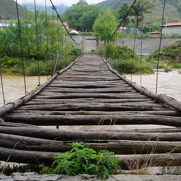 深一脚浅一脚搞得晕头转向,颠来颠去的还把骑行眼镜弄丢了。走过烂路,想试试这个吊桥放松一下,但是走了几步就退了回去。这里不是游乐场,桥索无人维护,严重担心安全问题。以后这种娱乐还是直接省去吧。
