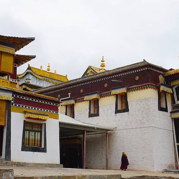 吊桥之后已经有经幡在飘扬,自此之后将会越来越多的接触到藏族人 民和 他们的生活,这趟旅行也开始变得越来越有意思。同回族一样,藏族的世界里也少不了寺庙,但是建筑风格可就没那么多变化了。再做个比较, 蒙古 人是把所有家当都装饰在身上好方便游牧和迁移,藏人则是喜欢把财产投入到荒山野岭中建造永久的辉煌。
