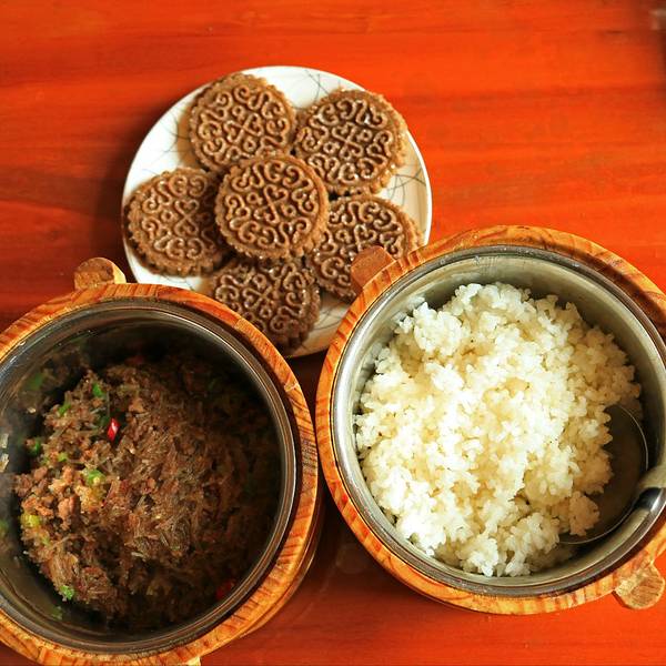 顺便补充一下,这家酒店的早餐提供了当地特色的酥油面,味道很特别,吃不惯的确实有点困难。当地特色,值得一尝。 展开