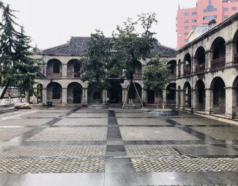非常漂亮的一个民国时期建筑,个人以为最值得一看的南昌建筑。可惜错过时间了。在边廊的转角处设计成四角(