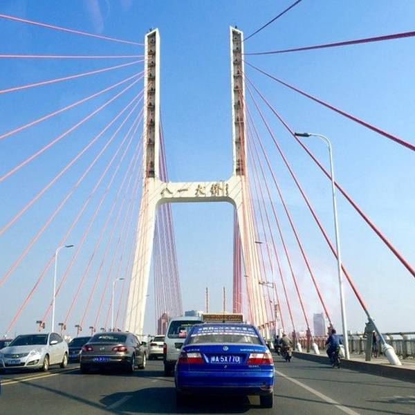 南昌新八一大桥于1997年9月29日正式建成通车,该桥是江西省第一座斜拉桥。